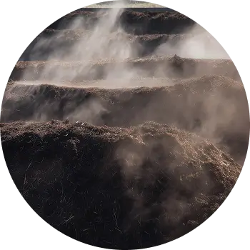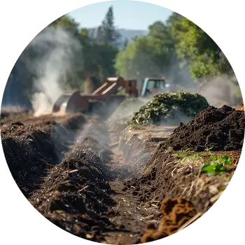 Abfälle werden mit Strukturmaterialien wie Holz oder Häckselgut gemischt und zu Mieten aufgesetzt, um optimale Rottebedingungen sicherzustellen.