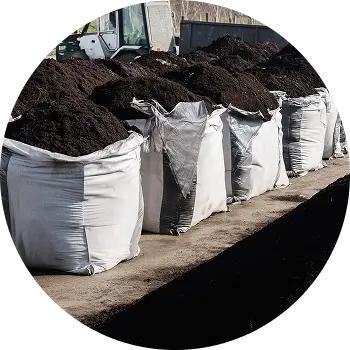 Der fertige Kompost wird gesiebt, in Big Bags abgefüllt oder zur Selbstabholung bereitgestellt – je nach Kundenwunsch und Bedarf.